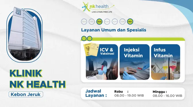 Klinik Fisioterapi NK Health memiliki berbagai macam pelayanan untuk segala usia dan untuk berbagai macam keluhan seperti : saraf kejepit, sakit bokong, stroke, cedera olahraga pasca operasi dan lain-lain.