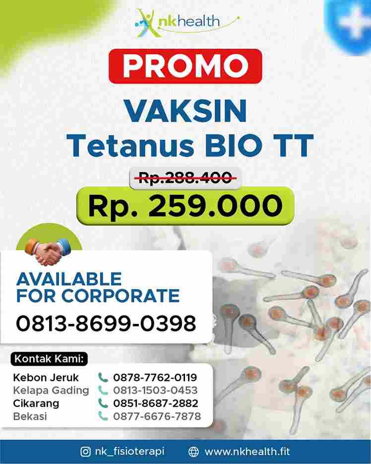 PROMO KLINIK NKHEALTH Khusus Cabang : DAPATKAN PROMO BINTARO Khusus Cabang : DAPATKAN PROMO GADING SERPONG Khusus Cabang : KEBON JERUK KELAPA GADING Khusus Cabang : CIKARANG PEKAYON Khusus Cabang : PROMO SURABAYA Promo Vaksinasi NK Health UNTUK BOOKING PENJADWALAN VAKSIN, KLIK BUTTON DI BAWAH INI KEBON JERUK KELAPA GADING CIKARANG BEKASI